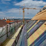 Das Dachgeschoss wird ausgebaut und das darüberliegende Flachdach teilweise begrünt.